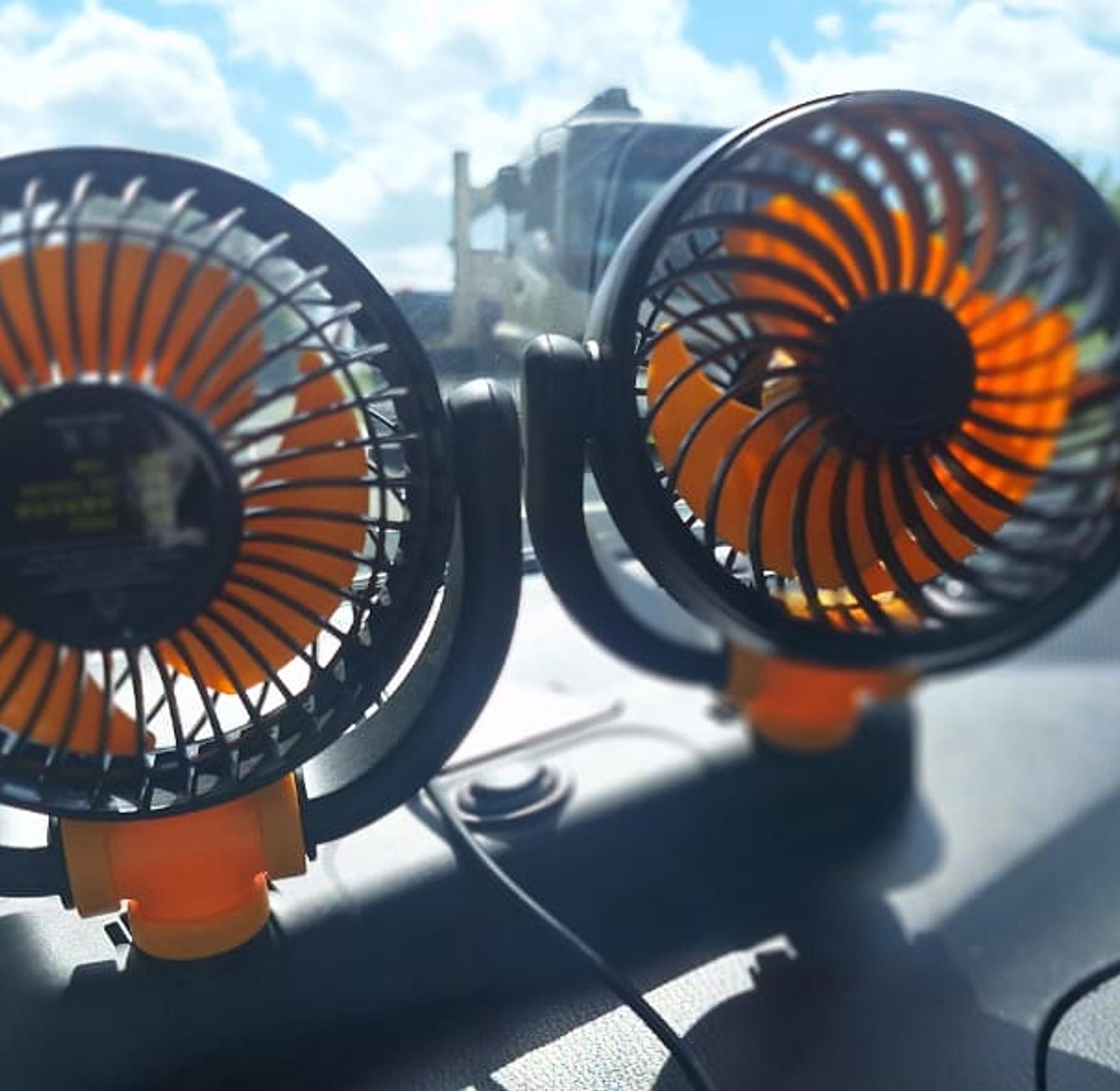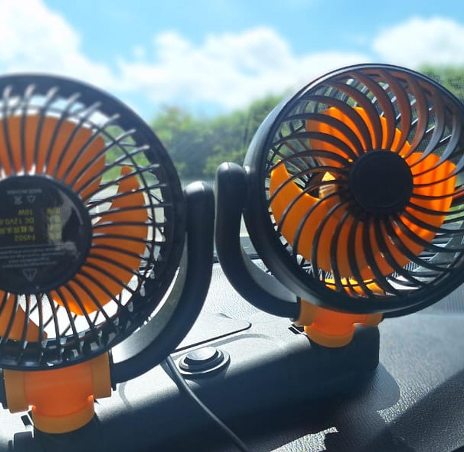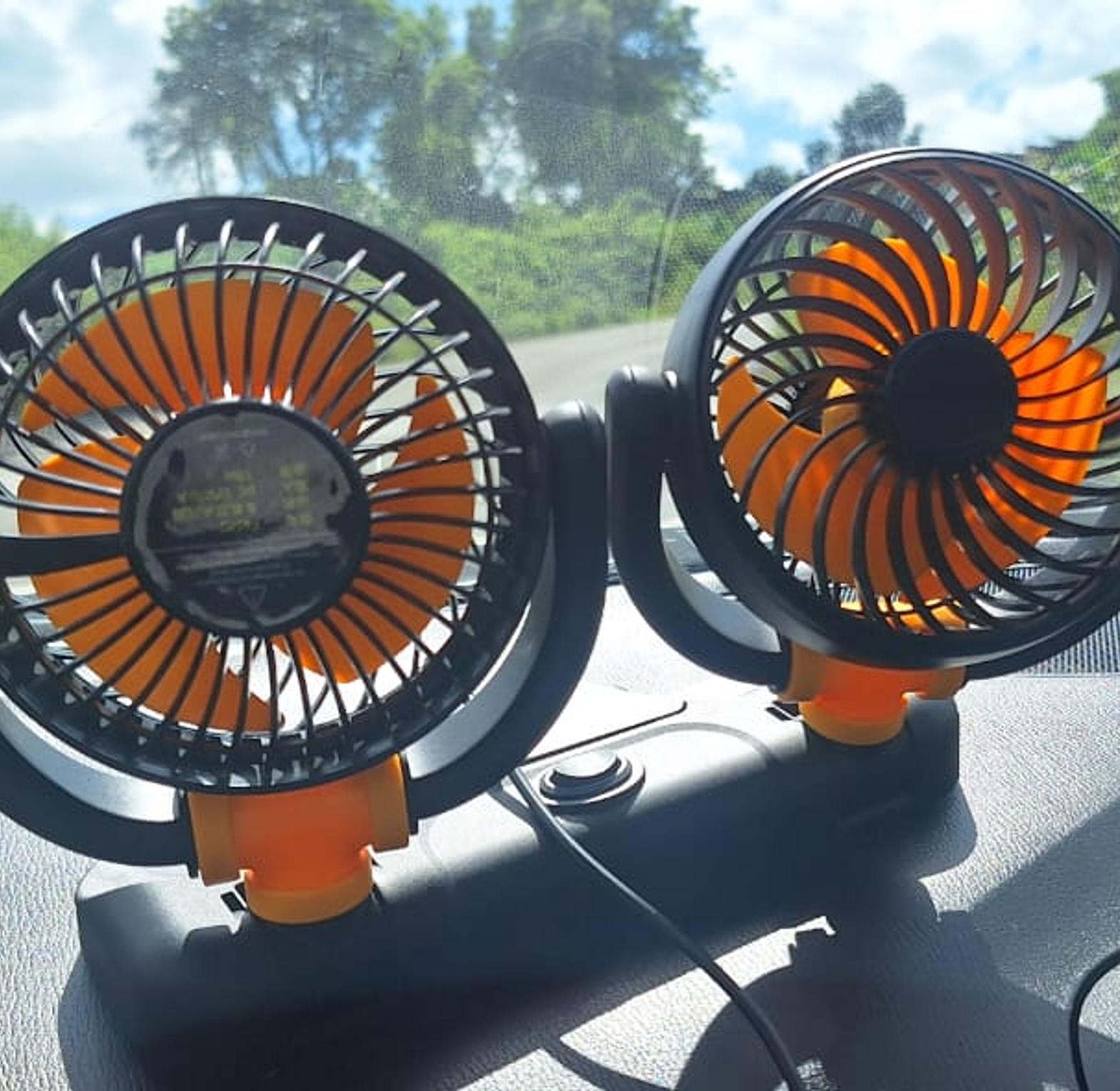 【Dual Head Design】Portable car fan with dual-head design, built with durable plastic and spring and button, small portable unique design, bringing cool air and meet the needs of several people.